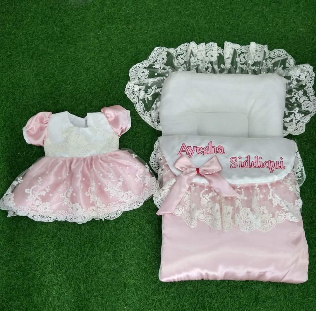 Personalize it with your baby's name in Urdu or English, along with their date of birth, and even pictures. Customization can be done on both the carry nest and pillow as shown in the pictures.