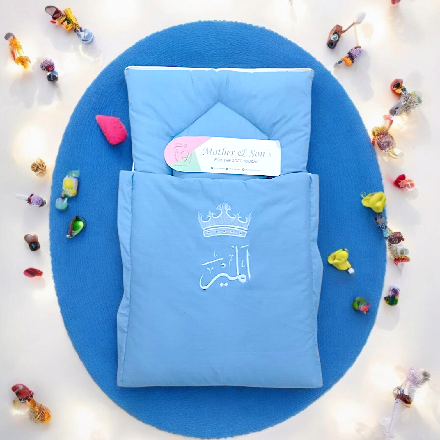 Personalize it with your baby's name in Urdu or English, along with their date of birth, and even pictures. Customization can be done on both the carry nest and pillow as shown in the pictures.