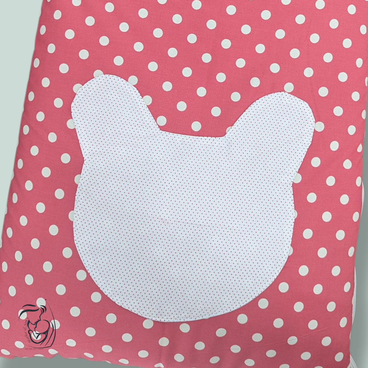 The soft bear appliqué adds a delightful, baby-friendly touch—making the nest feel playful and welcoming in any nursery setup.